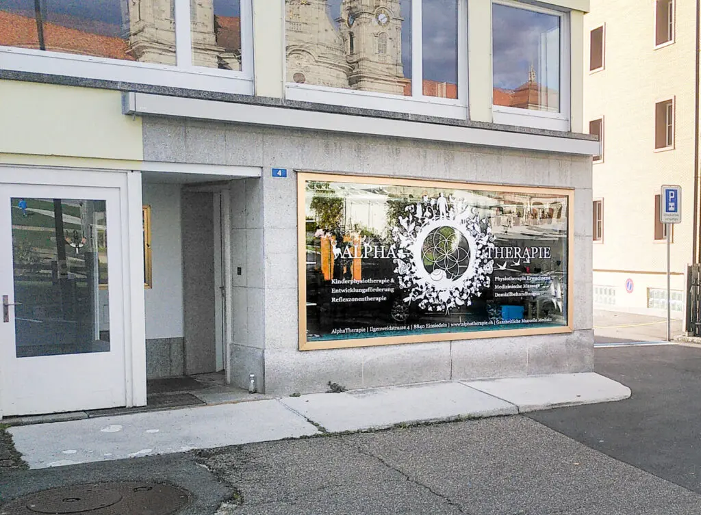 Die Praxis befindet sich direkt vor dem Spielplatz beim Kloster Einsiedeln, gegenüber des Minigolfparks und den öffentlichen Parkplätzen. Über der Praxis befindet sich das Hotel St. Johann.